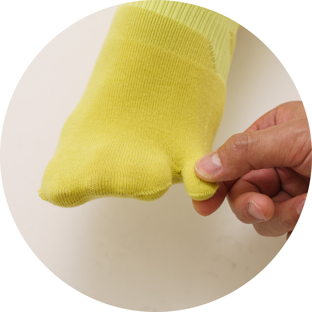 小指がわかれた独自の形状をしており、さらにかかとの近くにサポートを入れることで効果的に足をサポートしてくれます。